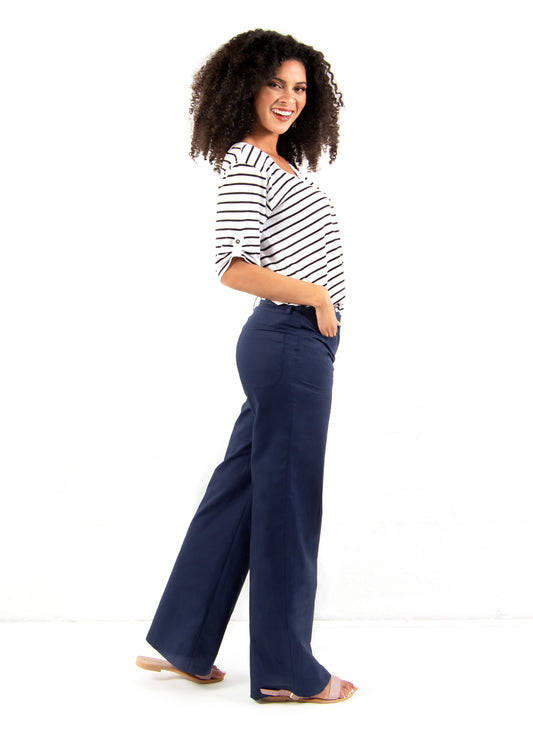 Lin Wide-Leg Trousers in Navy linen blend