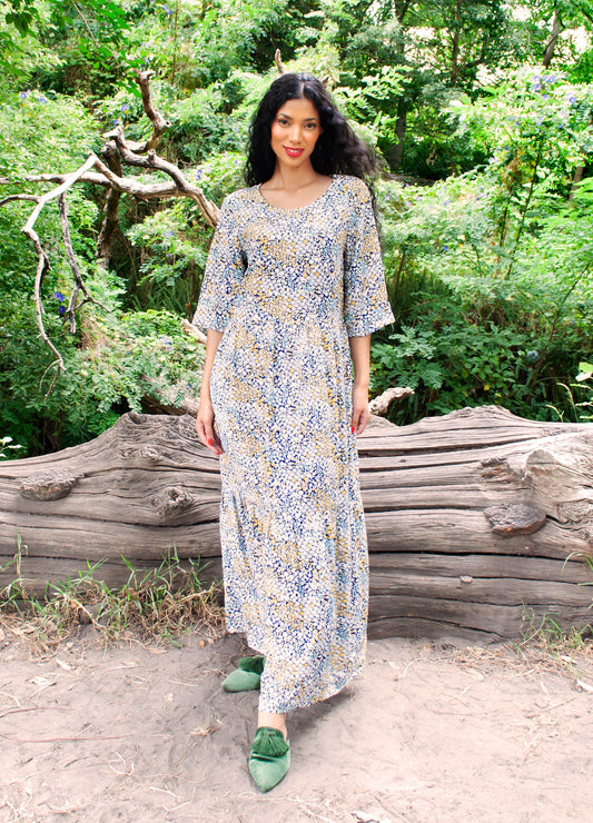 Marlie maxi dress in navy Petal Stream print size 32