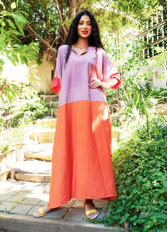 Gabriella kaftan in patchwork Desert Rose rayon blend