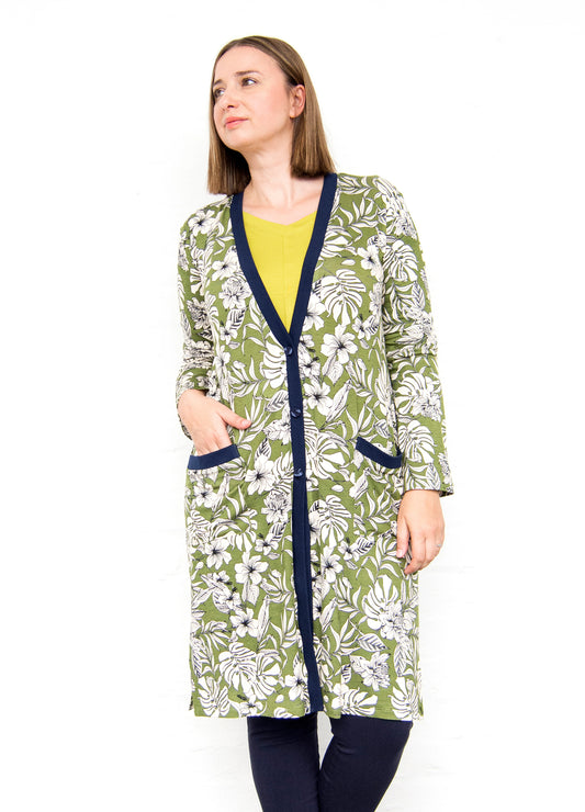 Nicolette Cardigan in olive Carolina Floral