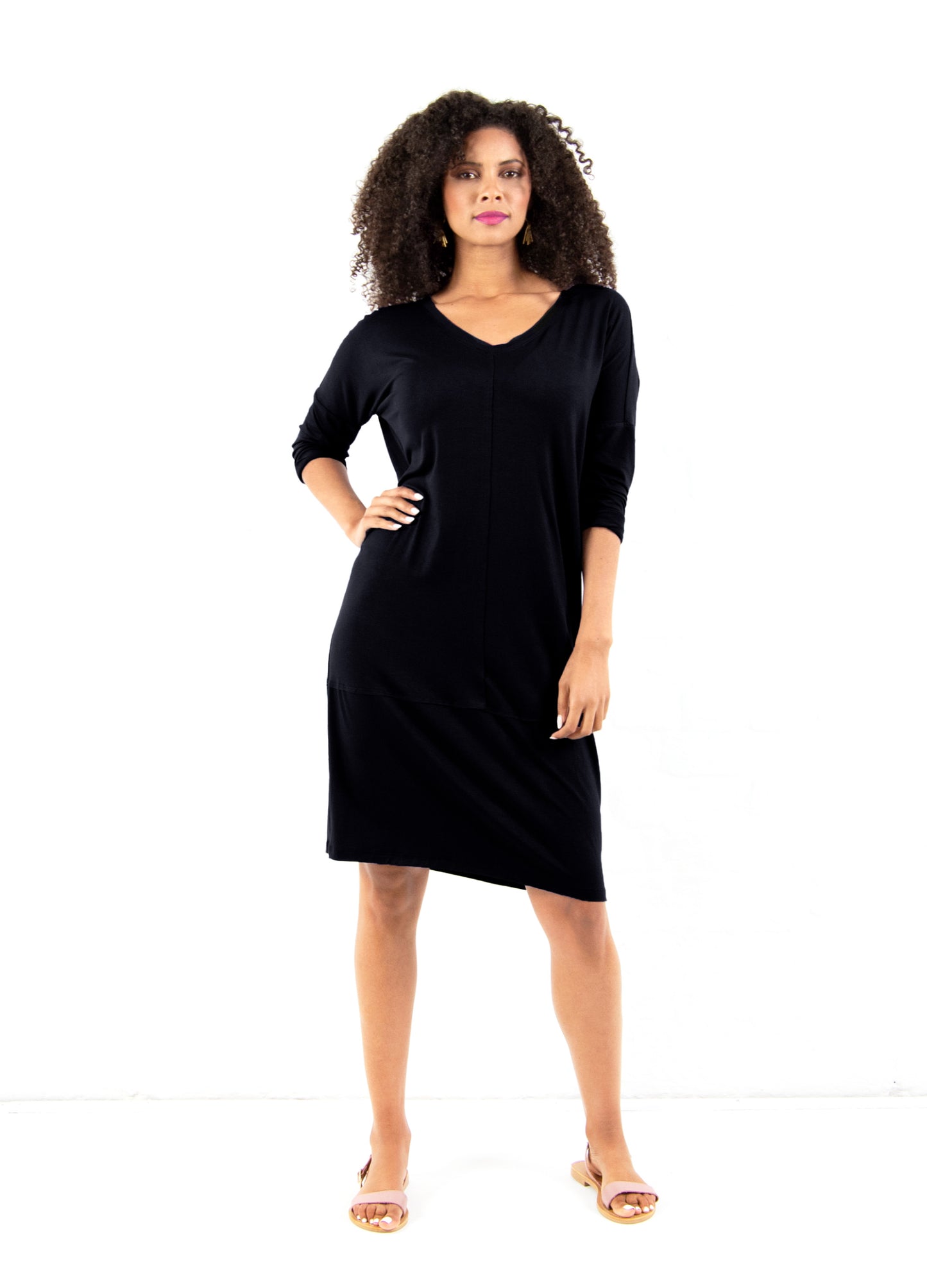 Our Abigail lantern dress is easy to wear, feels soft and comfortable and makes a bold colour statement. This dress has cut lines that create a lantern-like silhouette, along with dolman sleeves and a v-shaped neckline, plus we've added raw seam detail for surface texture.