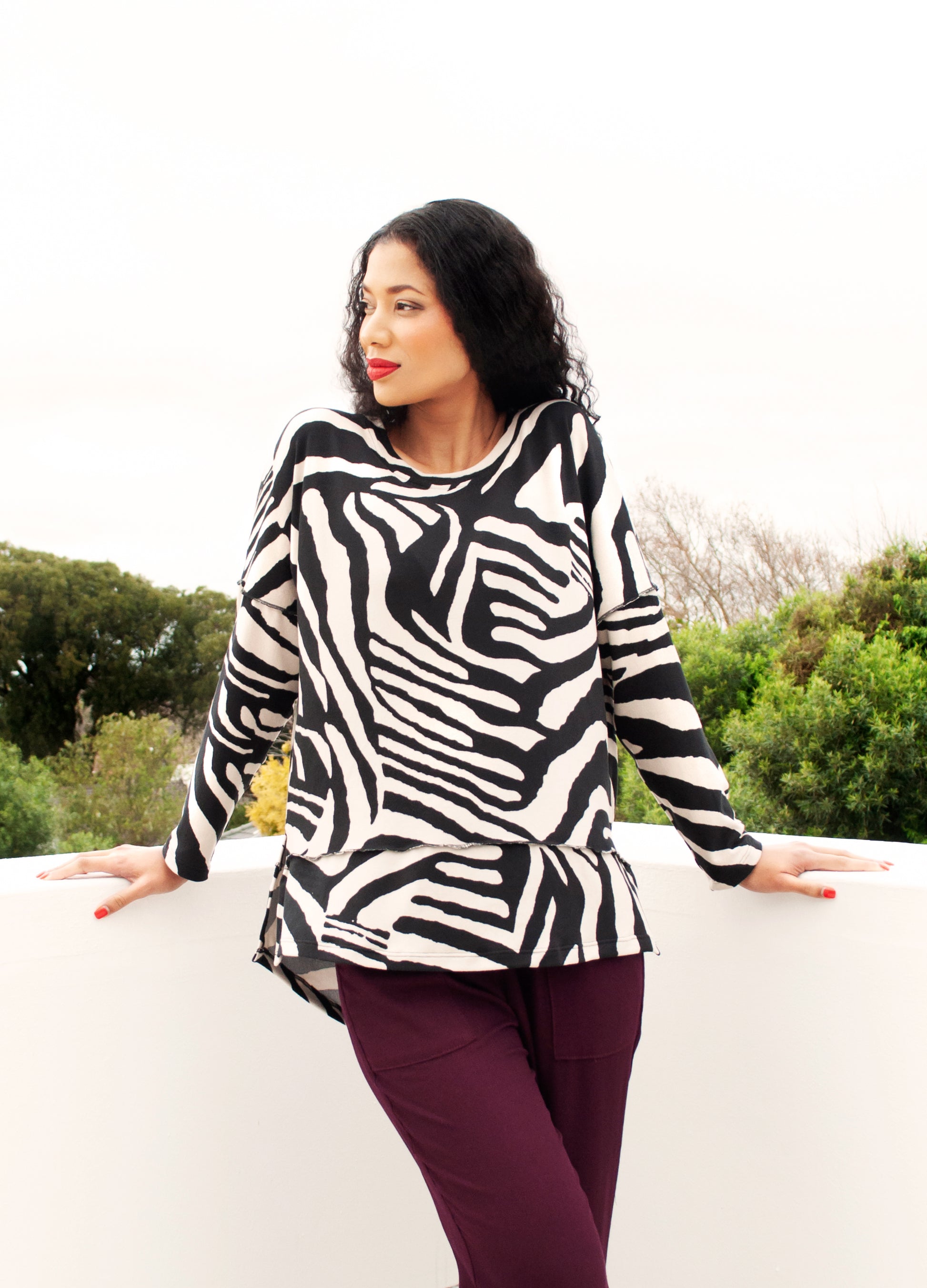 Meet your future favourite relaxed-fit jersey! The Nelly pullover is our take on an every day classic knit. This medium-weight cut & sew knit pullover features a boxy silhouette with dolman sleeves and exposed overlocking seam detail. Finished with side slits and a longer length at the back, you will love the look and feel of this light-weight jersey with a twist.