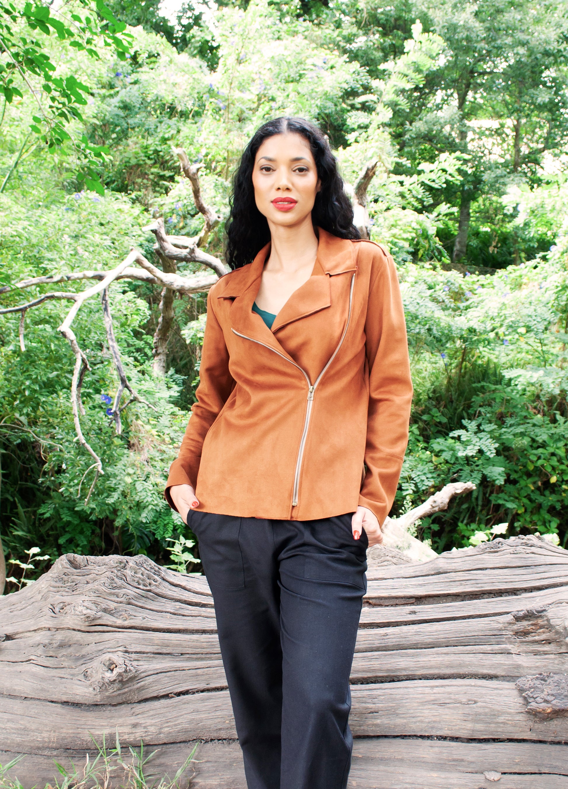 We think our Ryleigh biker jacket is the best jacket you'll ever own! Crafted from soft suede scuba, Ryleigh offers a fashionable take on the classic biker style jacket. This fitted jacket style includes signature raw seam detail and a front overlap finished with an antique brass zip.